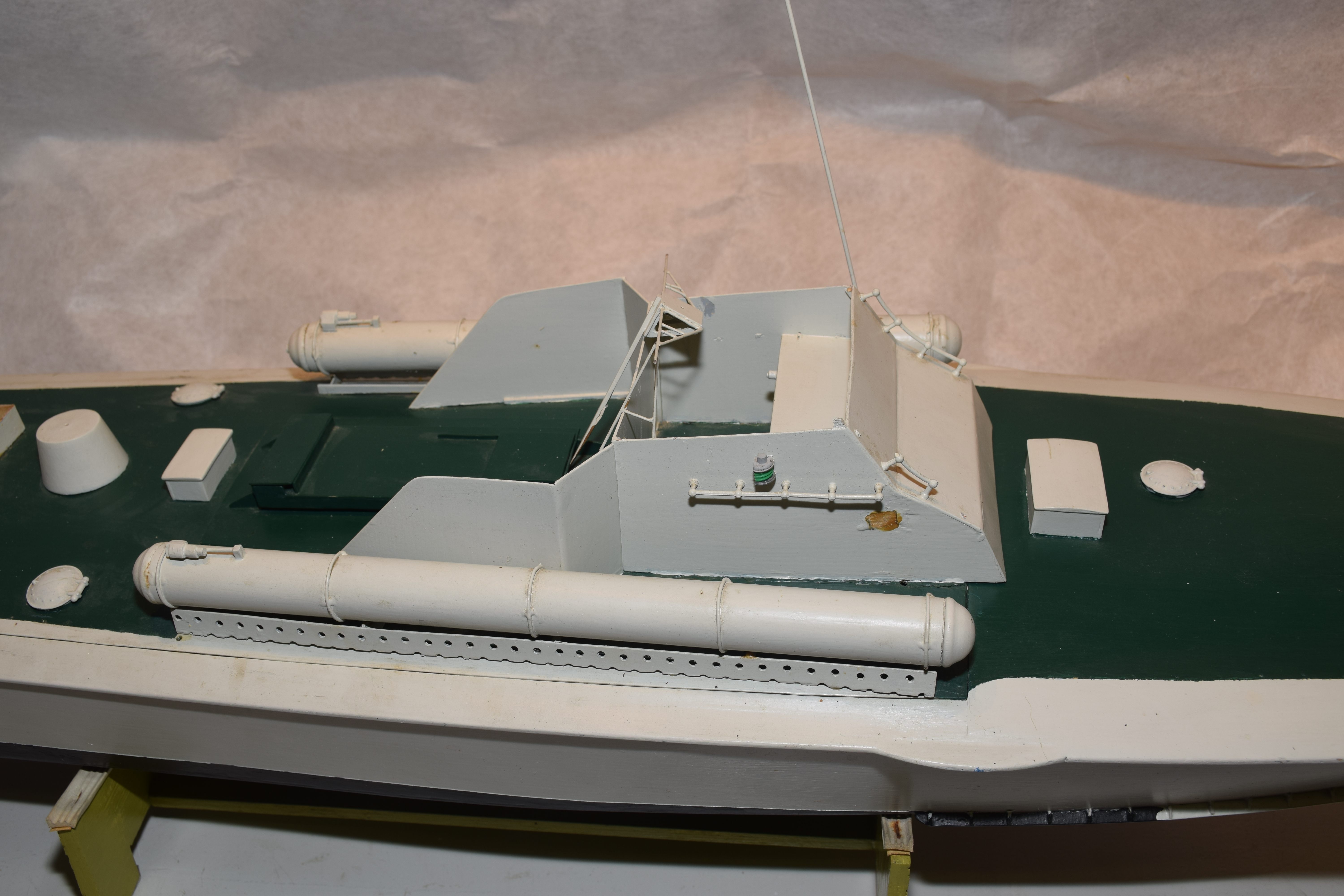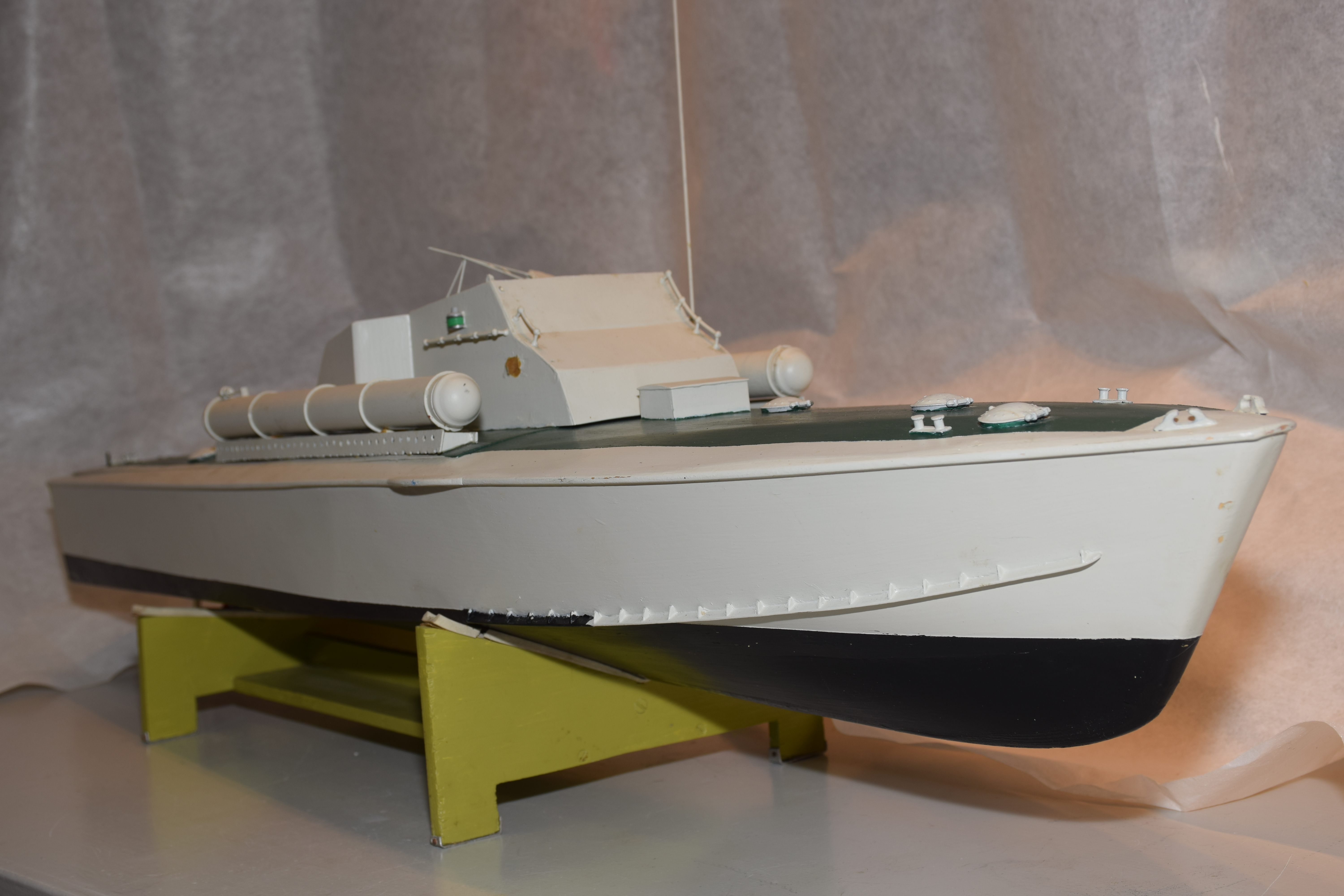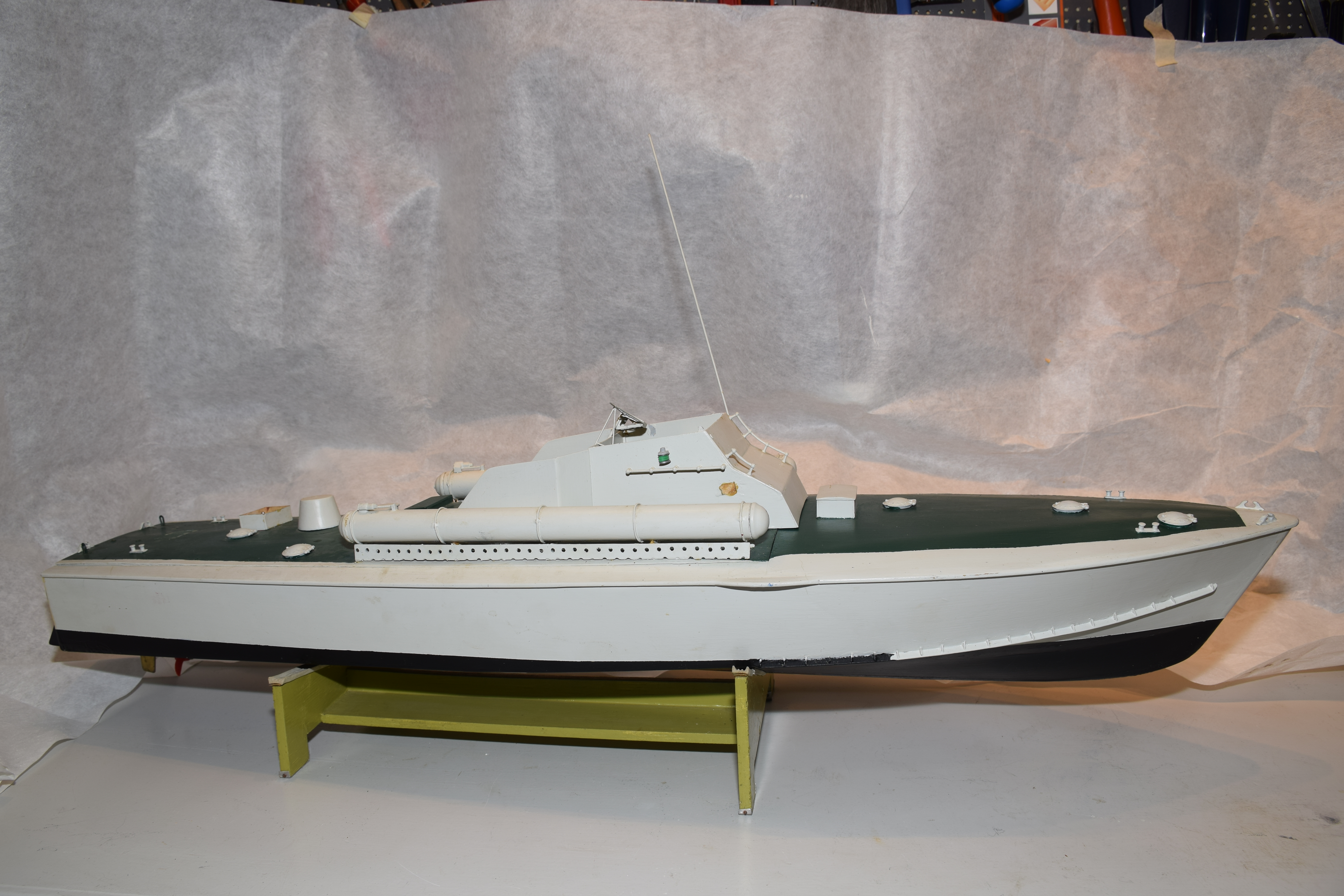 This is a 1:25 model of the Swedish Motor Torpedo Boat T42 ( T42 Class). I built her in the middle of the 60's (thats's more than 50 years ago). She was at that time equipped with an IC engine and I had a Sanwa 27 MHz radio. Then I motorized her with an Graupner 540 brushed motor. Through the years she has followed us as we have moved around Sweden and she has lost some of her accessories. My plan is to refurbish her and equip her with new motor, receiver and motor. I'm gonna use her her as a test bench for differnt electronics projects.